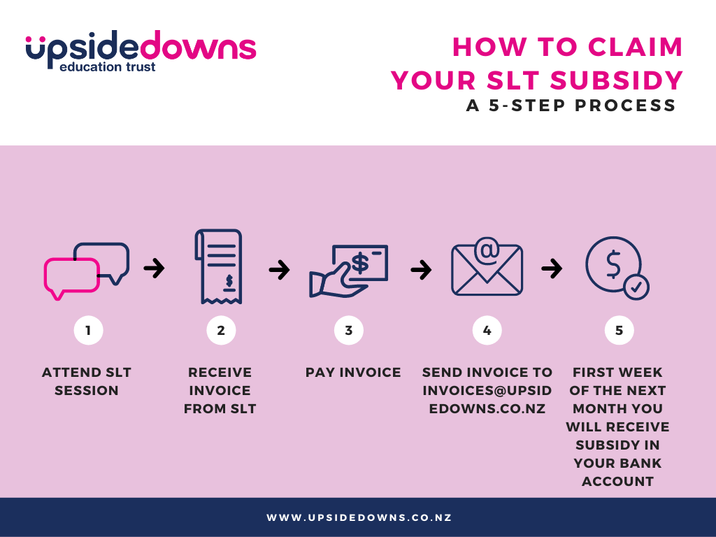 UpsideDowns members are reimbursed their chosen percentage of their SLT invoices each month. If they send us an invoice in March, for example, it will be reimbursed within the first five working days in April. Members are responsible for sending us their invoices on time, and invoices older than 3 months at the date of receipt are not reimbursed. You are welcome to contact us if you are having difficulty with payments from an UpsideDowns member.