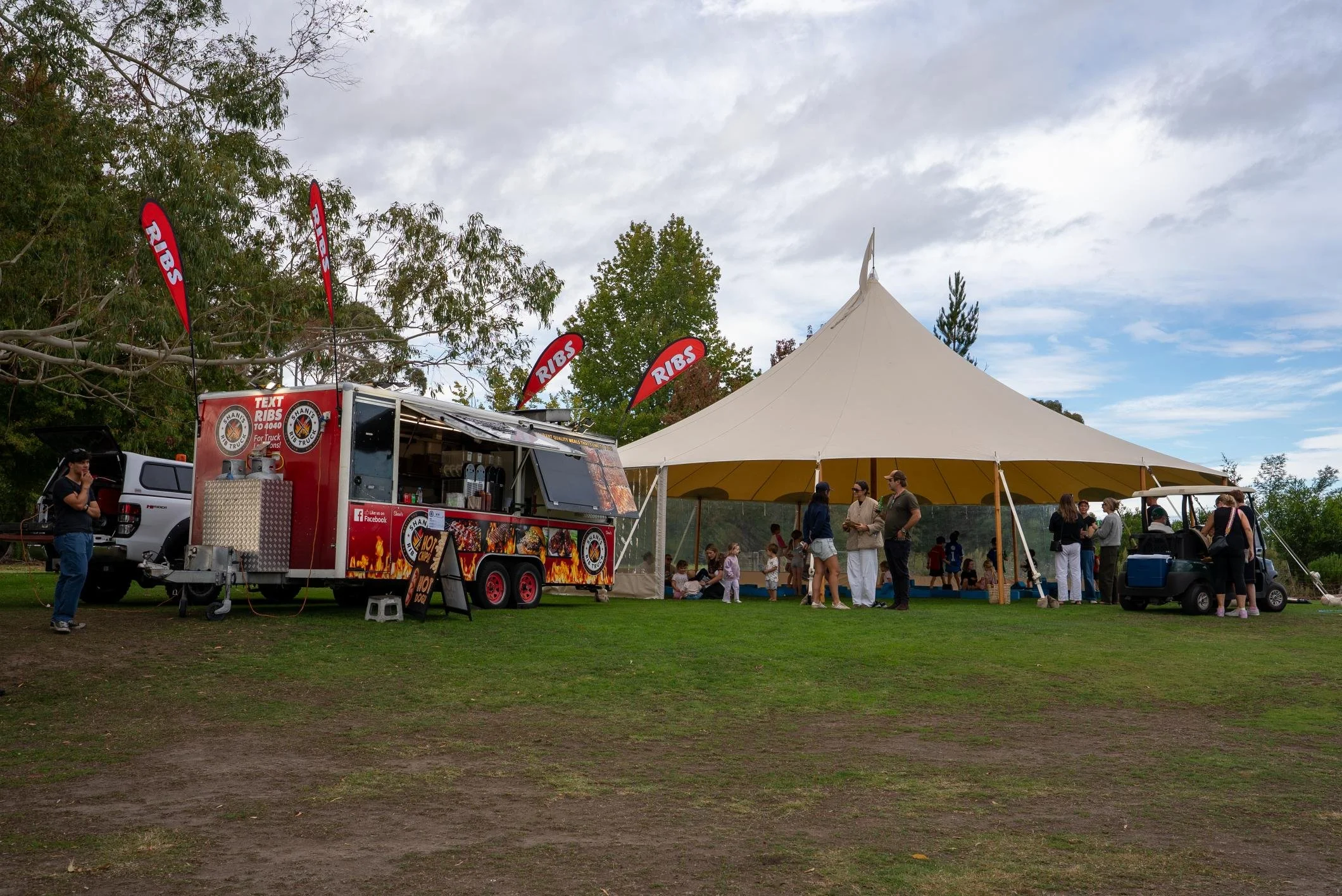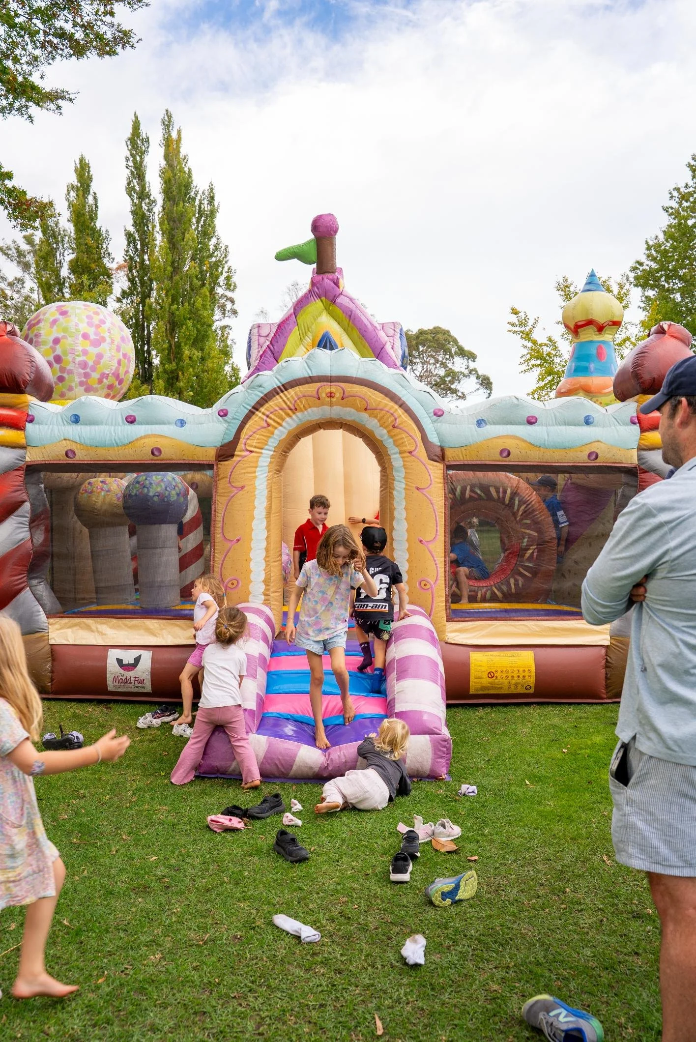 While the golf teams competed and enjoyed drinks on the course, served via golf carts, families gathered in the Kids Zone for free entertainment – bouncy castles, games, food, and junior golf lessons.
